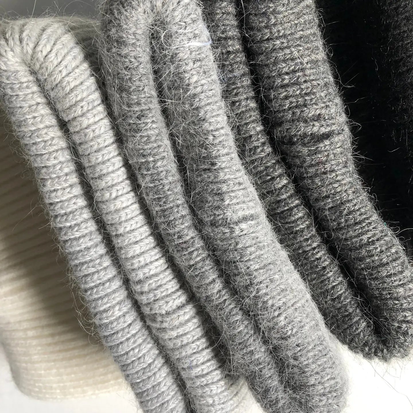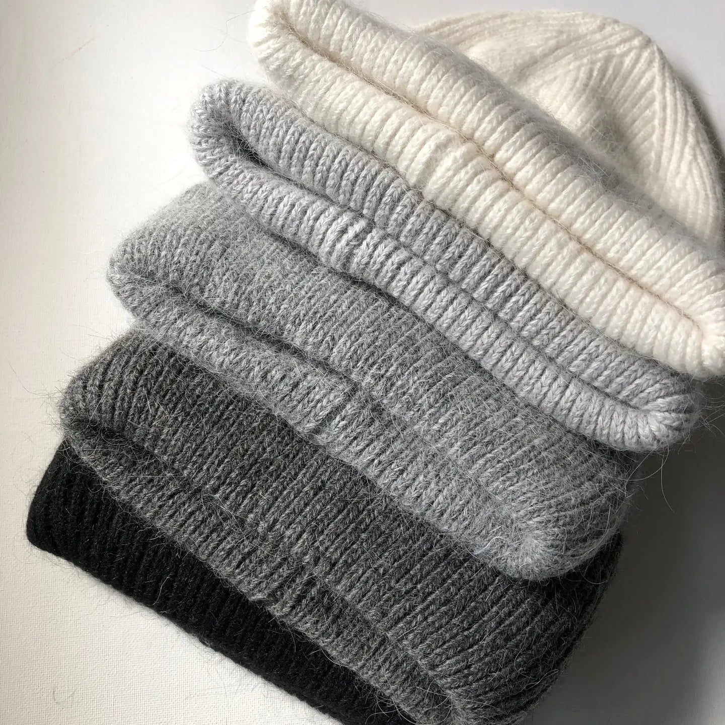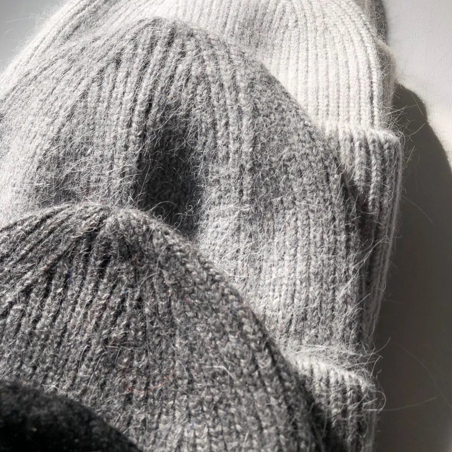 We updated our yarn and color this winter, high percentage angora, changed the acrylic to viscose yarn, more fluffy looking and more soft hand feel. - Single layer, double turn up.