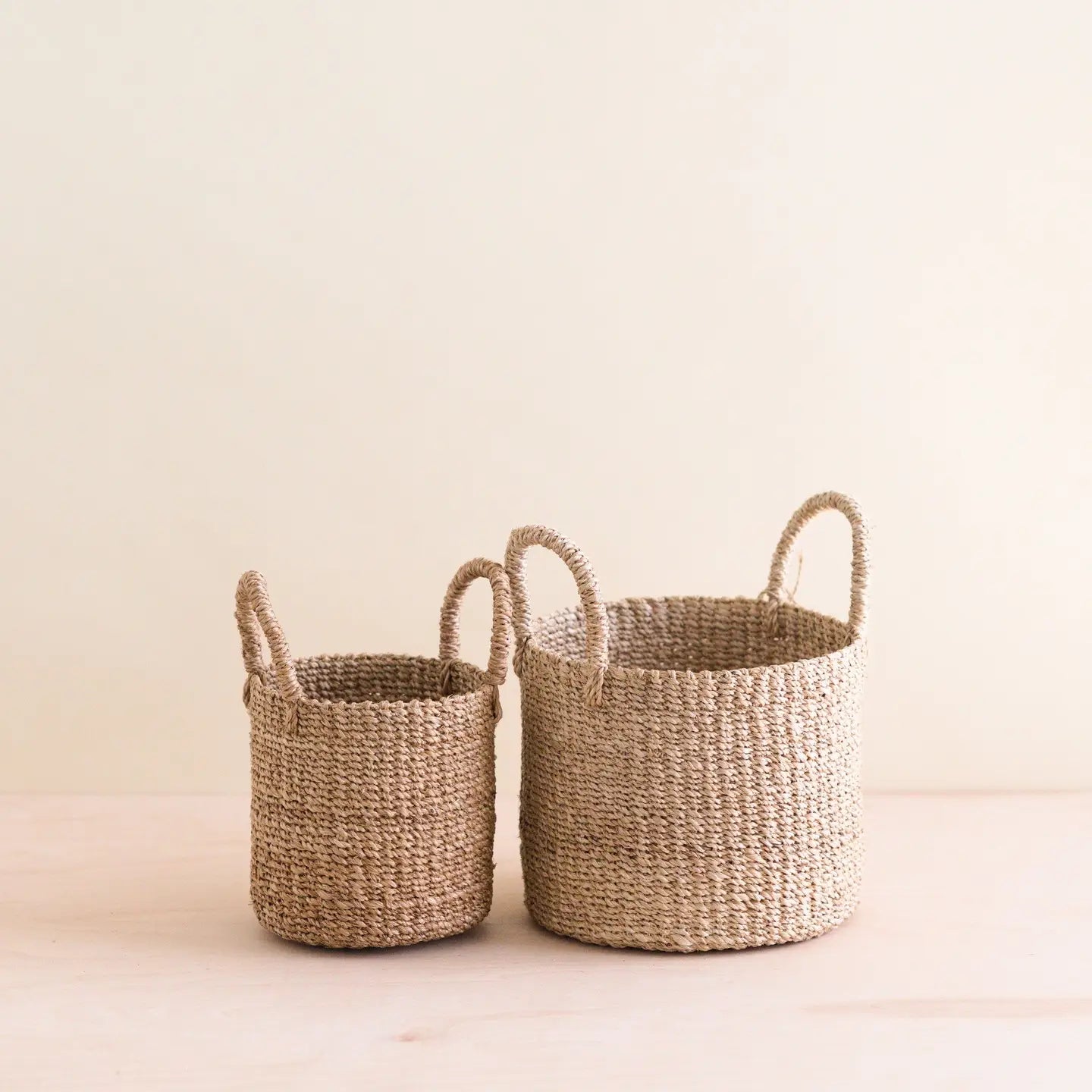 LIKHÂ | Natural Tabletop Mini Basket with Handle Set of 2 - Weave Baskets